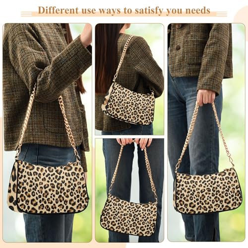 Zipper Aesthetic Shoulder Bag Black Brown Leopard Prints Beige Handbag Medium Fashion Womens Party Dressy Purse Hobo with Chain Strap 6