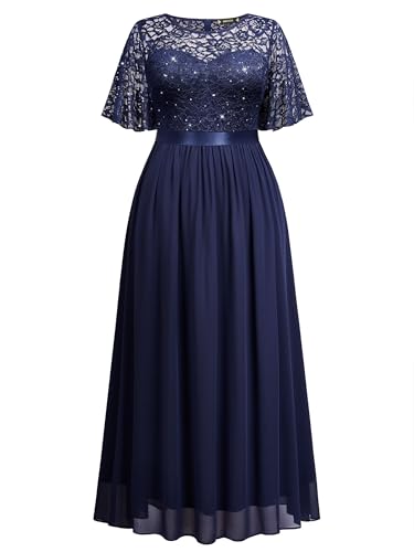 HOT ! Miusol Women's Plus Size Sequin Lace Round Neck Butterfly Sleeves Formal Evening Maxi Dress