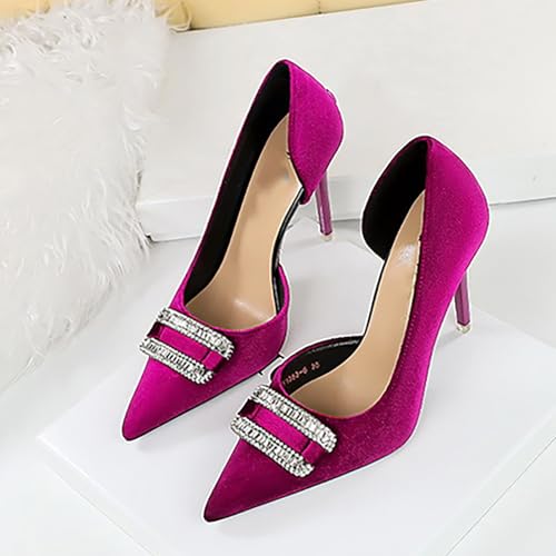 More information about Women's Suede Rhinestone Pointed Stiletto Pumps Sexy Elegant Slip On Evening Party Bridal High Heel Dress Shoes