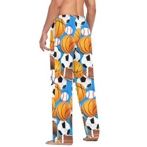 Custom Sports Balls Footballs Blue Cartoon Men's Pajama Pants 100% Cotton Men's Sleep Bottoms Drawstring S 6