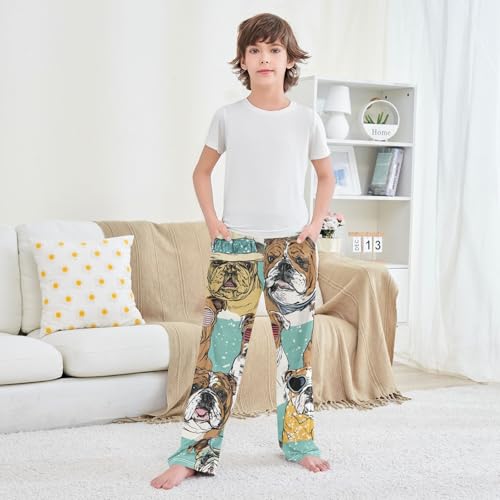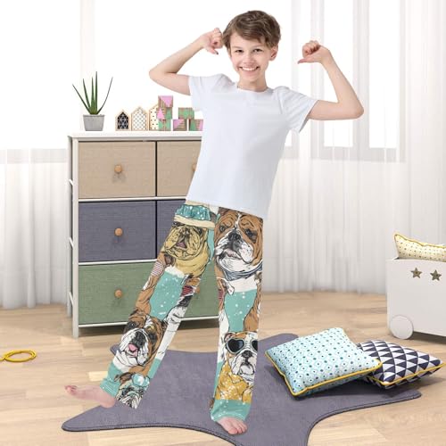 trending ! ZZXXB Bulldog with Glasses Boys Long Pants silky Trousers Elastic Waist Kids Lounge Bottoms with Pockets S-XL