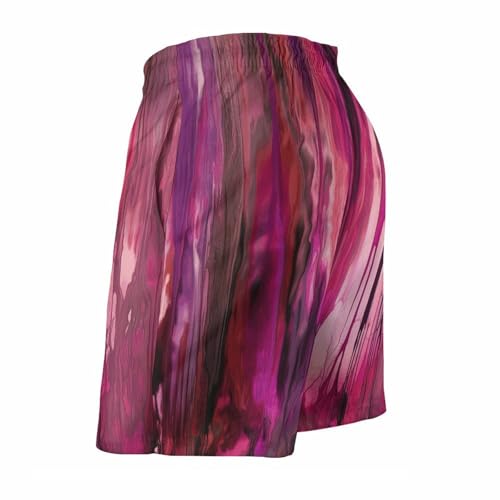 HOT ! Men's Swim Trunks Quick Dry Board Shorts with Pockets Beach Shorts Peach and Purple Stripes Bathing Suits for Men