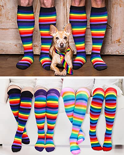 Chuarry 8 Pairs Women's Rainbow Thigh High Socks Fingerless Arm Warmer Set Long Striped High Socks Leg Warmers for Pride Fest(Mixed Color,Classic Style) 4