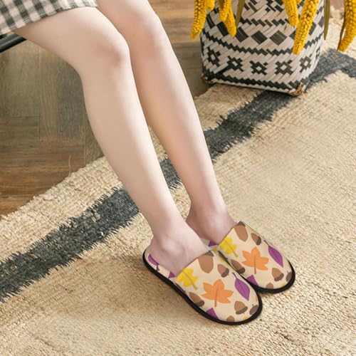 HOT ! Acorn Autumn Fall Leaf Leaves Print House Slippers For Women And Men,Soft Slippers With Memory Foam,Non-Slip Indoor Home Shoes