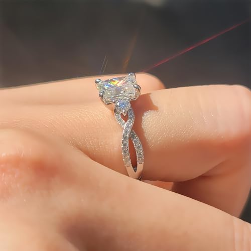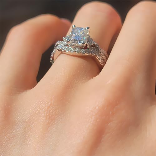 DovEggs Moissanite Wedding Ring Sets for Women 2ct GHI Color Radiant Cut Moissanite Split Shank Women`s Engagement Ring Anniversary Accents 14K Gold Quality Sterling Silver Promise Rings 6