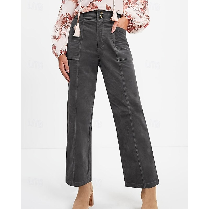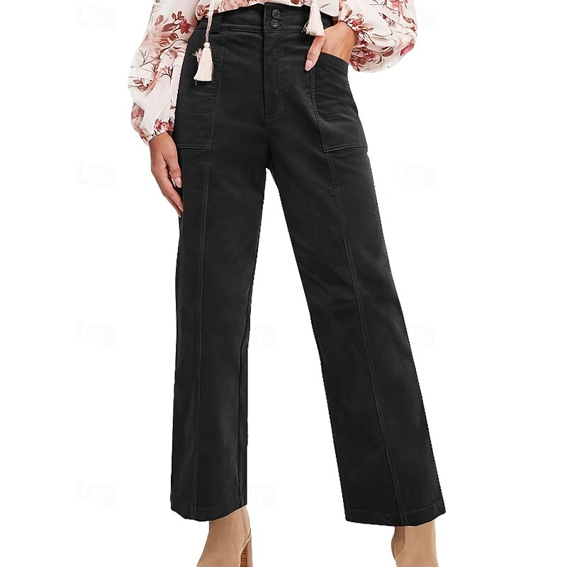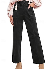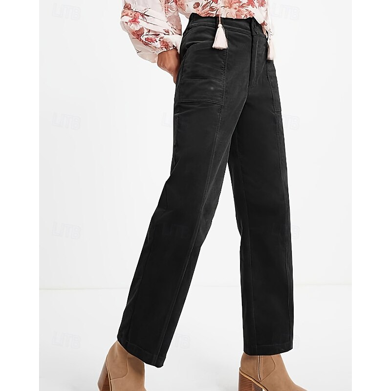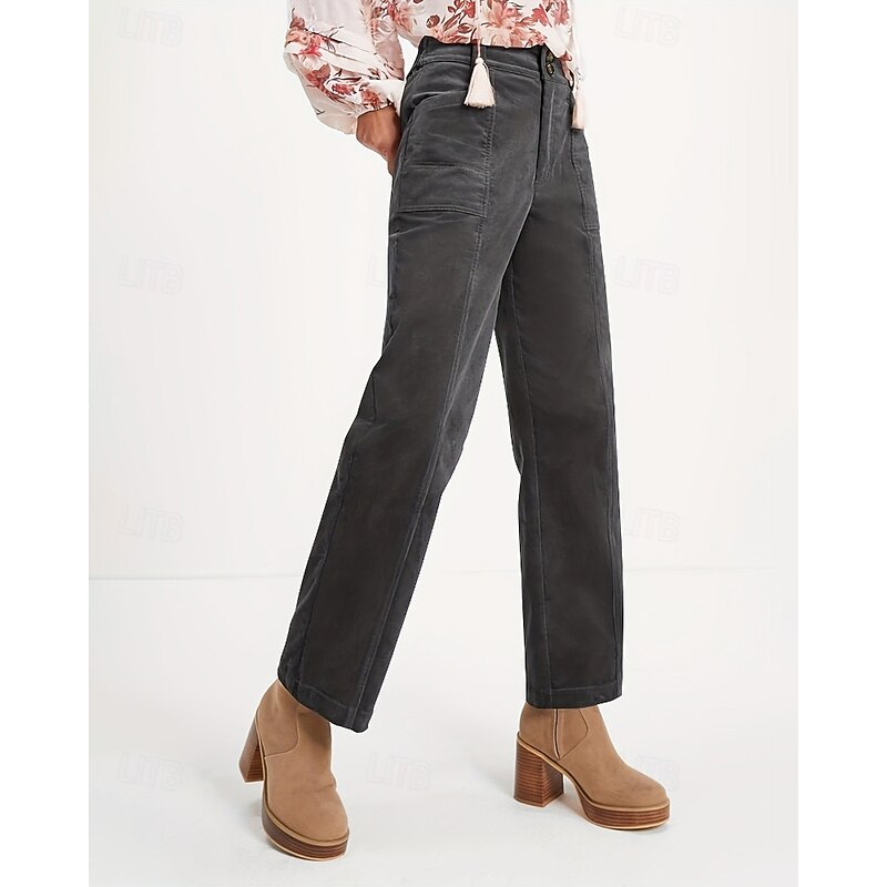 More information about Women's Chinos Straight Casual Full Length Medium Waist Plain Pocket Comfortable Micro-elastic Outdoor Vacation Street Dark Gray Black Brown Summer Spring Fall Winter Regular Fit