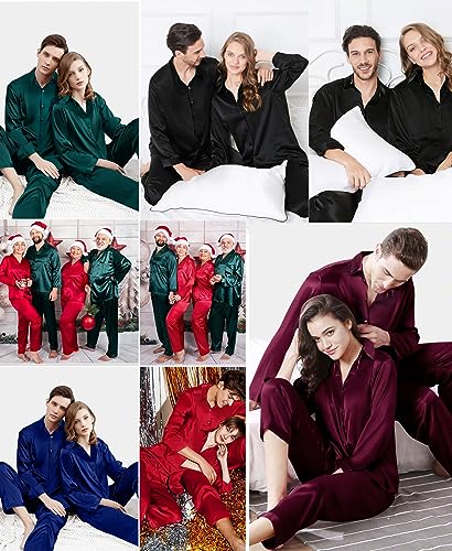 SWOMOG Couples Matching Pajamas Silk Satin Long Sleeve Button Down Sleepwear 2 Pcs Loungewear Mens & Womens Family PJs Set 5