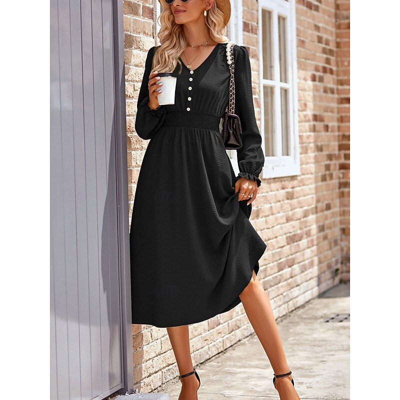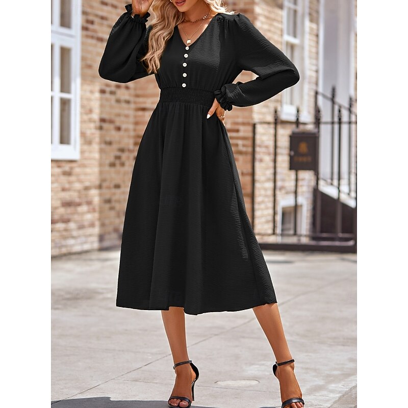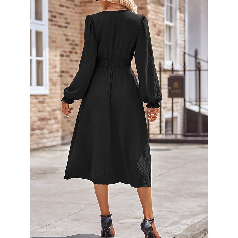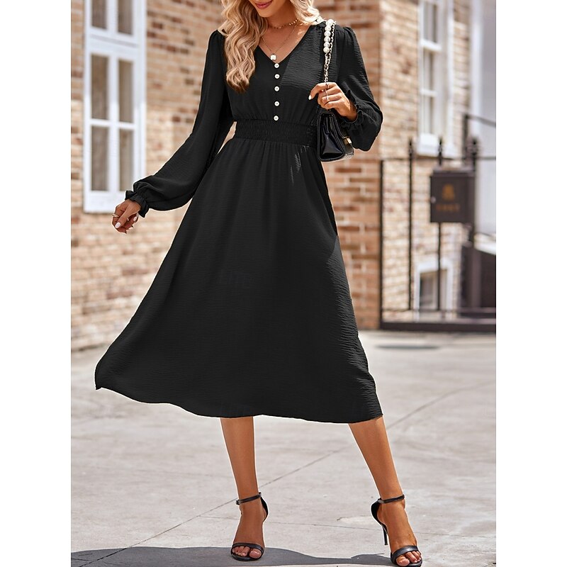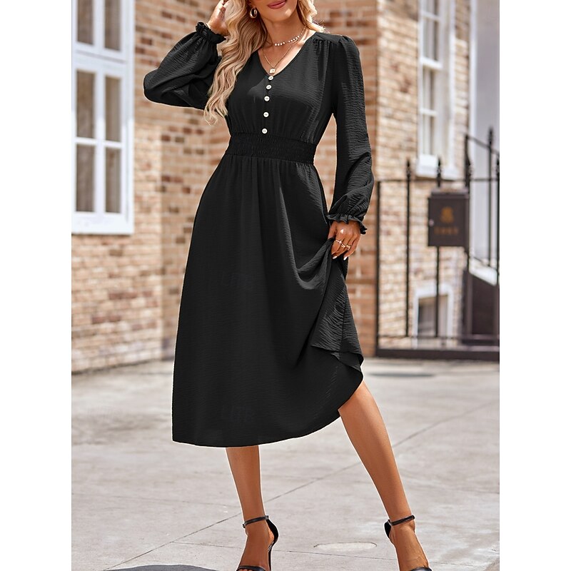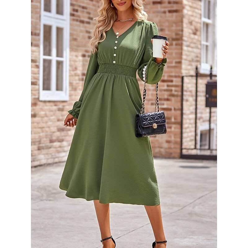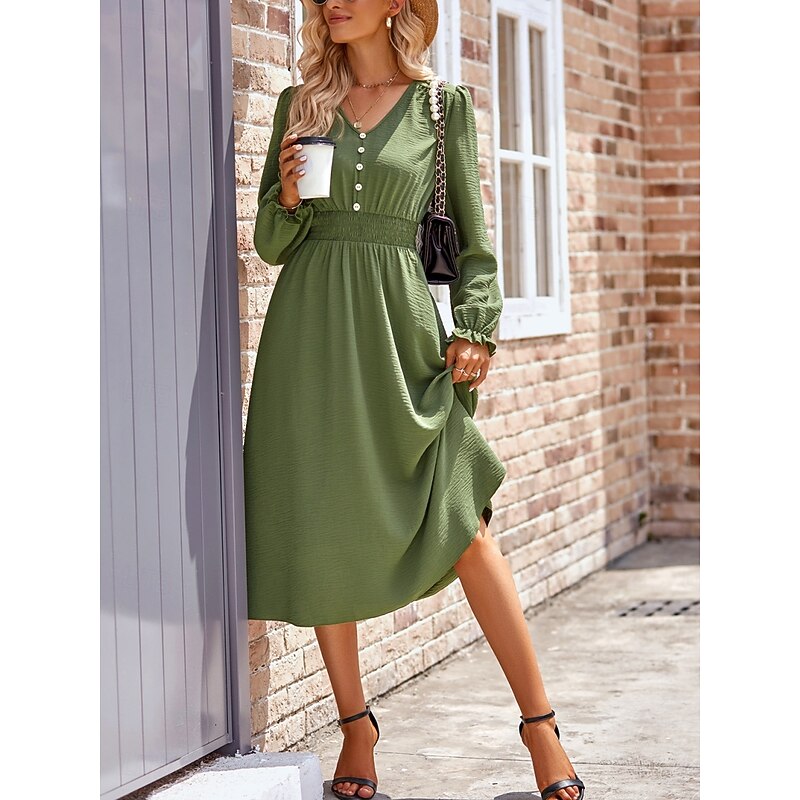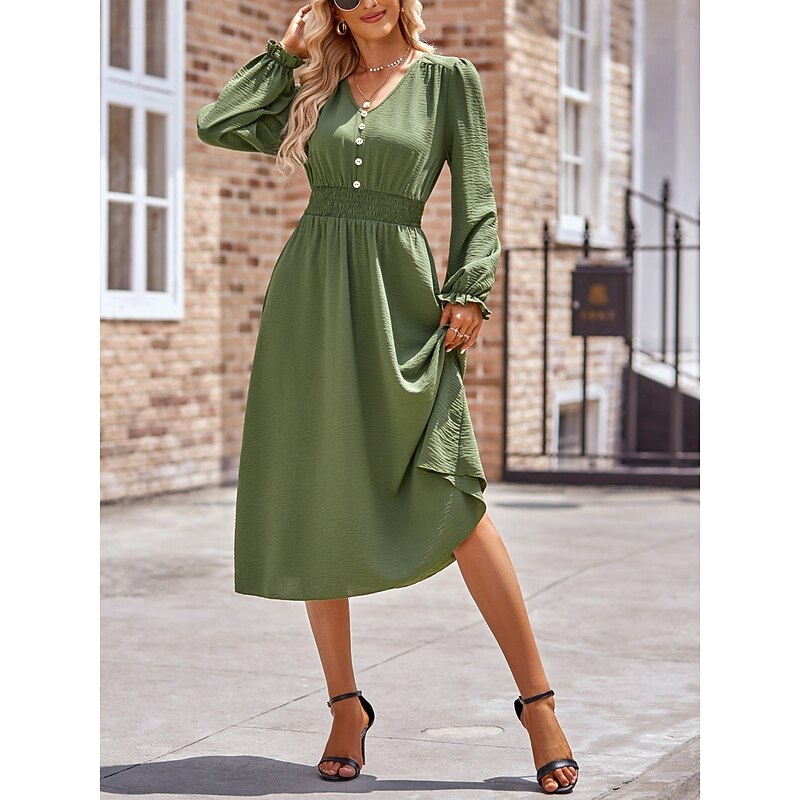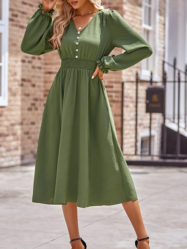 More information about Women's Midi Dress Casual Dress A Line Dress Stylish Basic Casual Vacation Daily Regular Fit Plain Long Sleeve V Neck Black Army Green Summer Spring