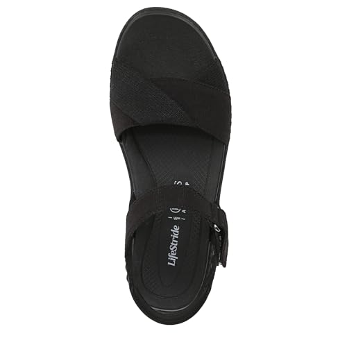 • Women's sporty sandal with stretch fabric upper with partially recycled linings and a round toe