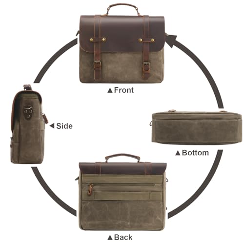 More information about Mens Messenger Bag Waxed Canvas Laptop Briefcase 15.6“ Vintage Genuine Leather Crossbody Bags Waterproof Satchel Shoulder Bag