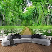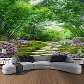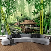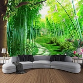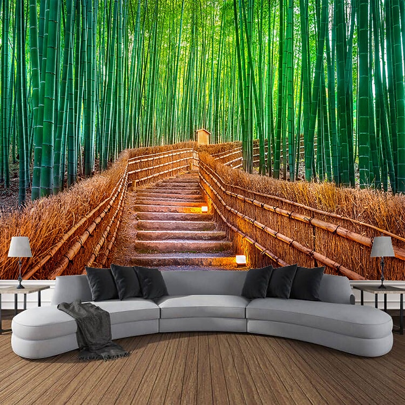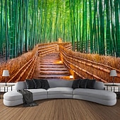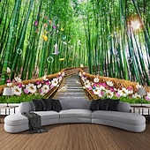 More information about Beautiful Green Wall Tapestry Bamboo Wooden Bridge Plants Natural Scenery Art Decoration Carpet Curtain Hanging Home Bedroom Living Room Decoration