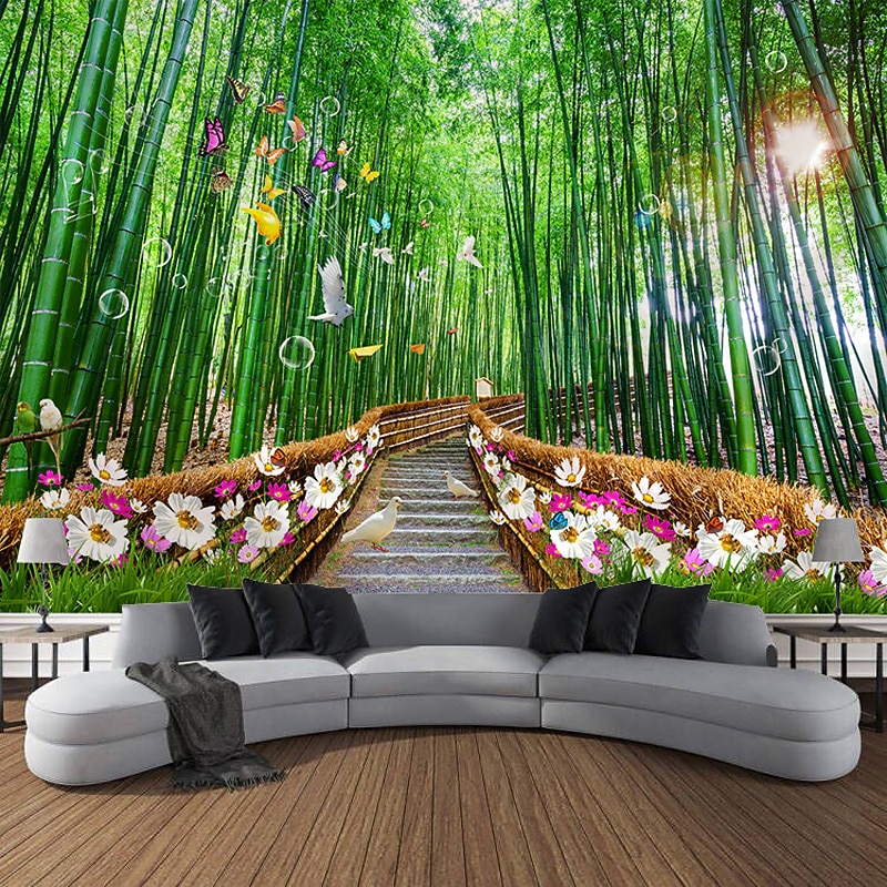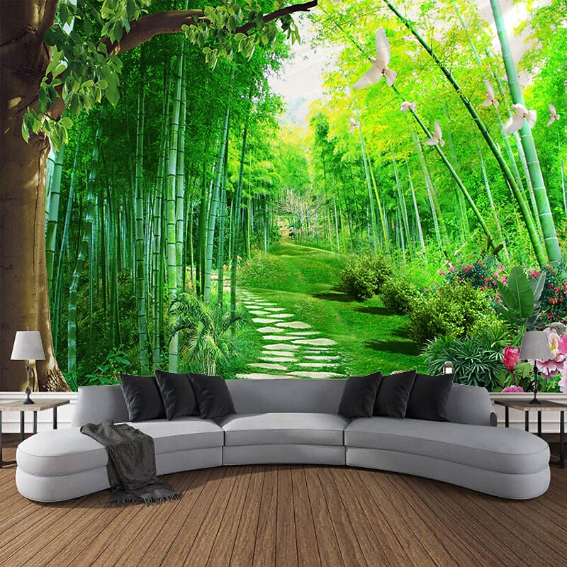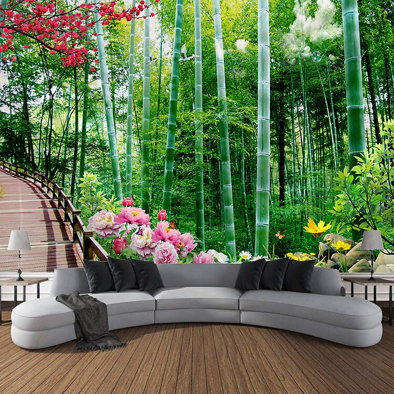 HOT ! Beautiful Green Wall Tapestry Bamboo Wooden Bridge Plants Natural Scenery Art Decoration Carpet Curtain Hanging Home Bedroom Living Room Decoration