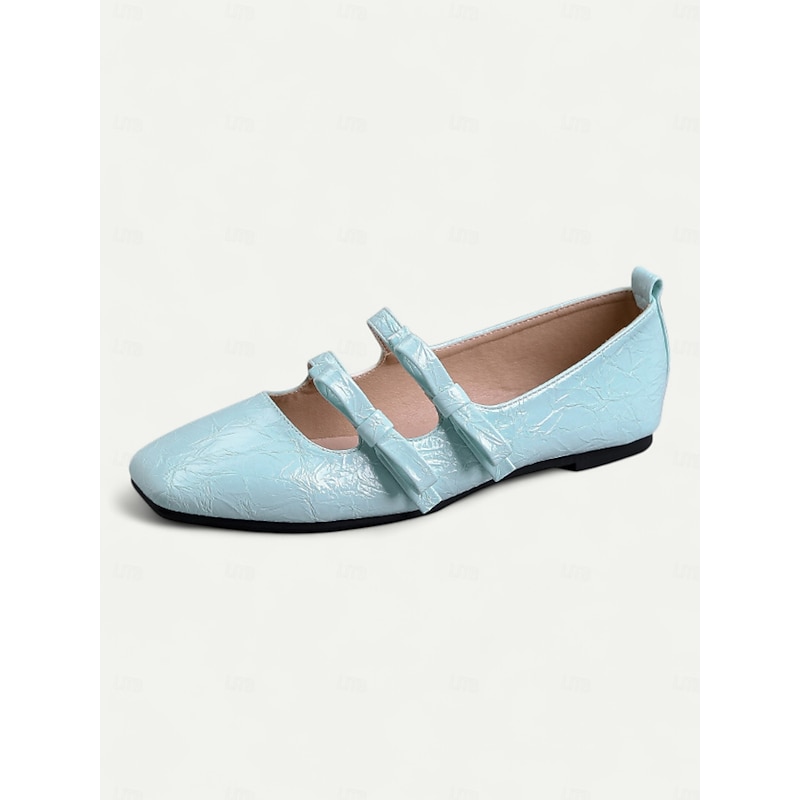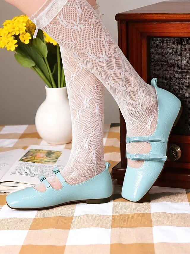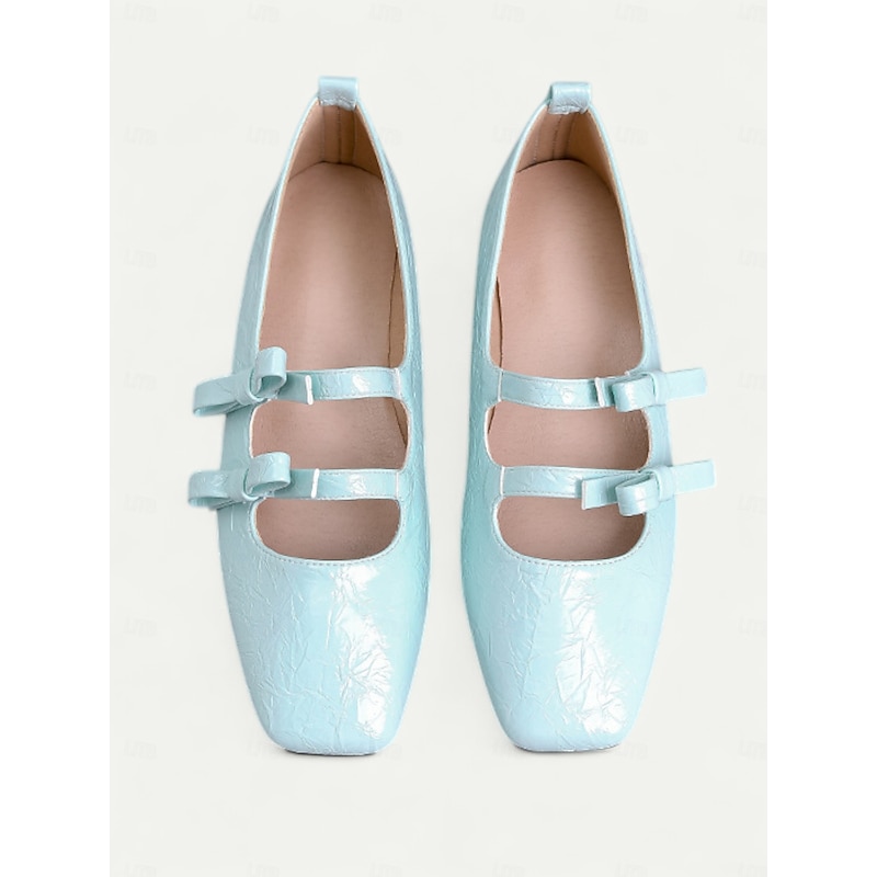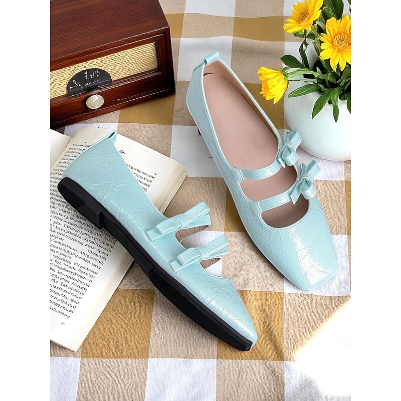 Women's Light Blue Triple-Strap Mary Jane Flats with Bows – 1950s Vintage-Inspired Square Toe Ballet Shoes for Outfits, Daily Wear, and Cottagecore Style 24