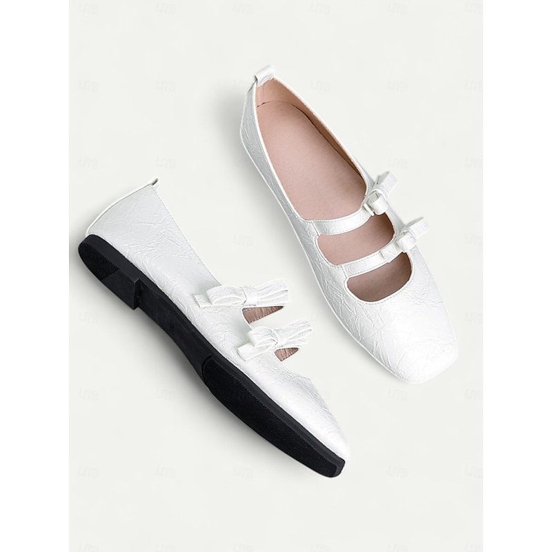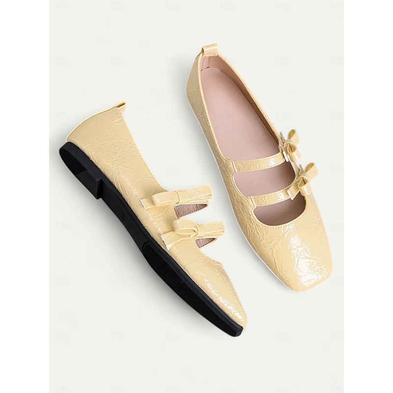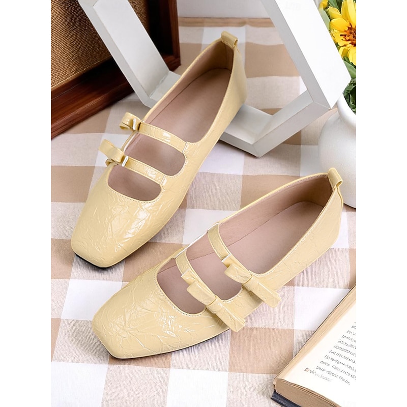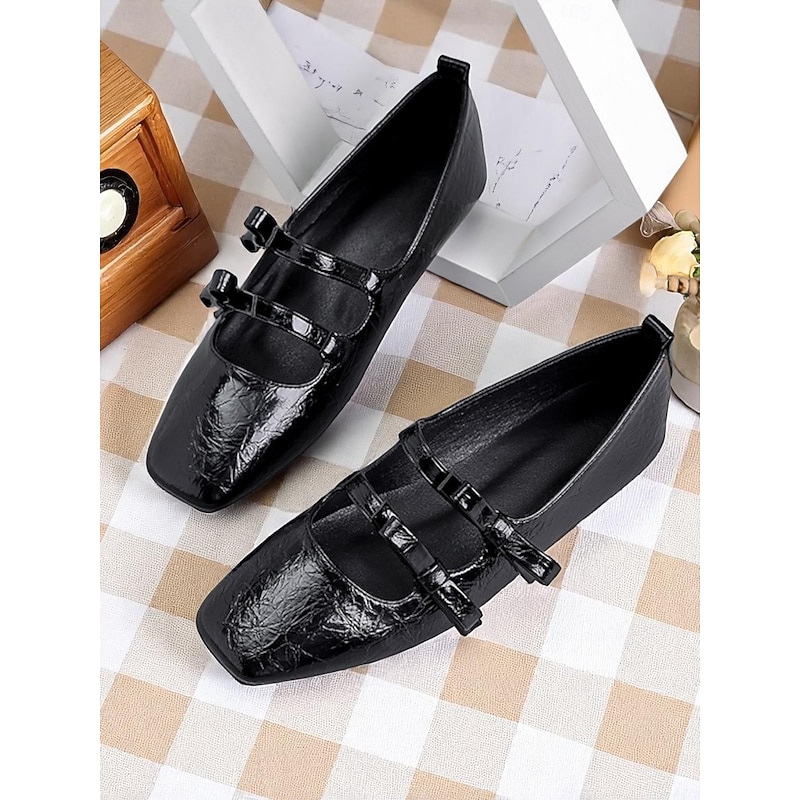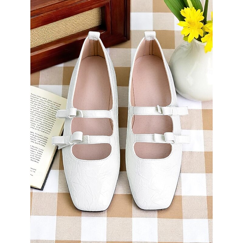 HOT ! Women's Light Blue Triple-Strap Mary Jane Flats with Bows – 1950s Vintage-Inspired Square Toe Ballet Shoes for Outfits, Daily Wear, and Cottagecore Style