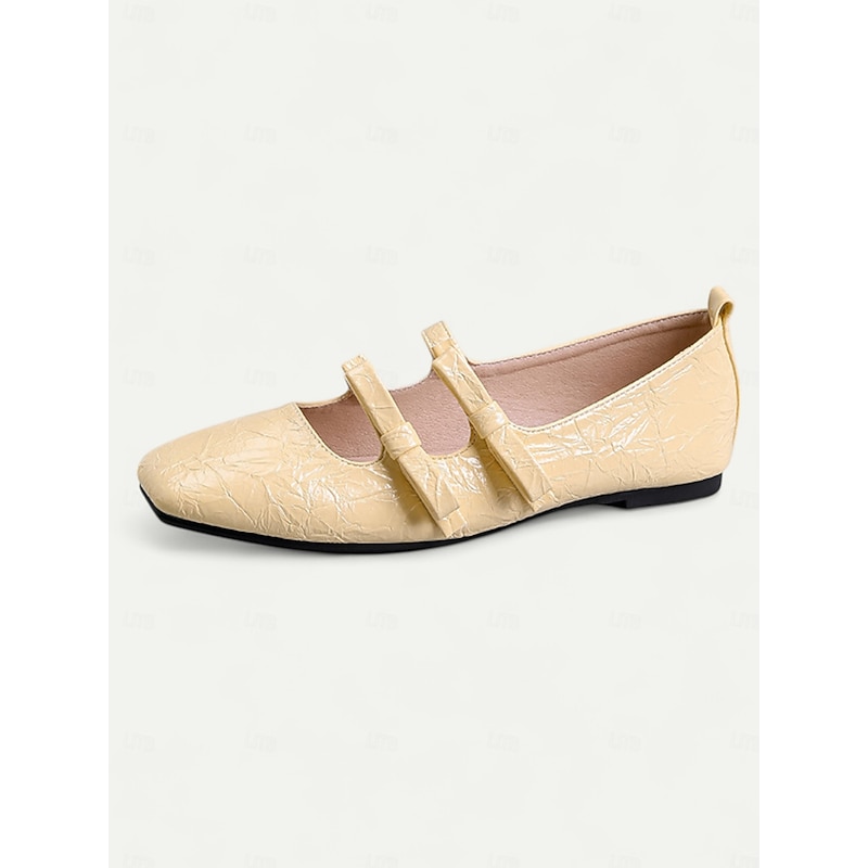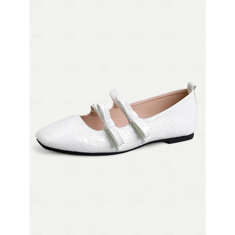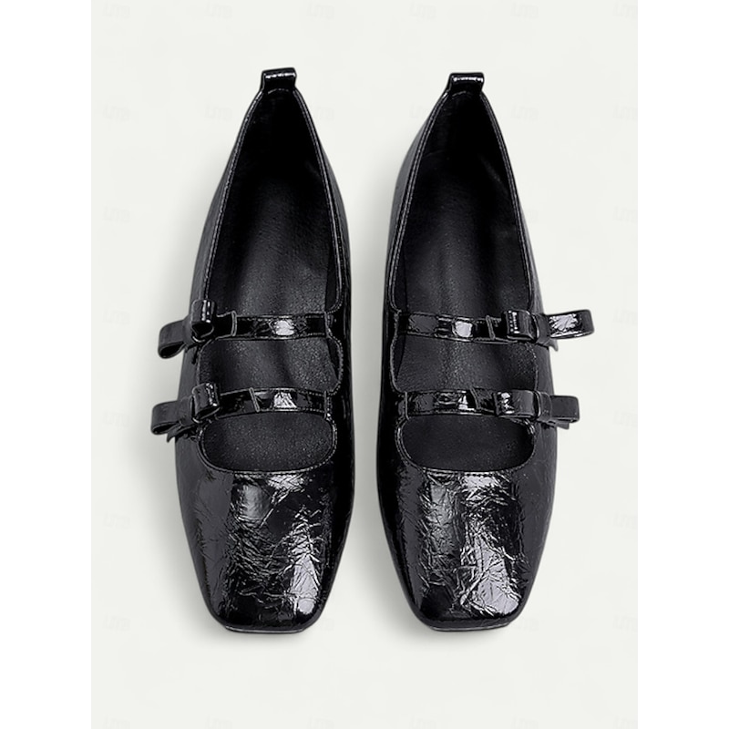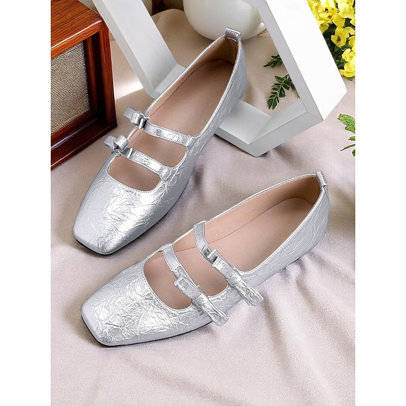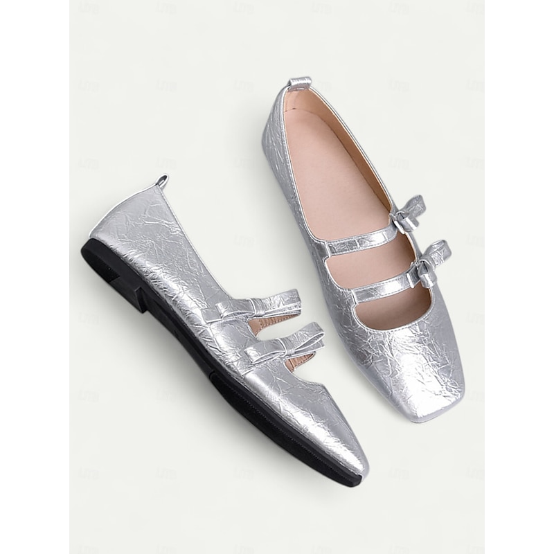 HOT ! Women's Light Blue Triple-Strap Mary Jane Flats with Bows – 1950s Vintage-Inspired Square Toe Ballet Shoes for Outfits, Daily Wear, and Cottagecore Style