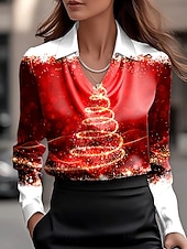 More information about Christmas Women's Shirt Ombre Graphic Christmas Tree Elegant Stylish Casual Long Sleeve Cowl Neck Regular Tops Work Party Evening Wear Daily Ruched Draped Wine Fall Winter