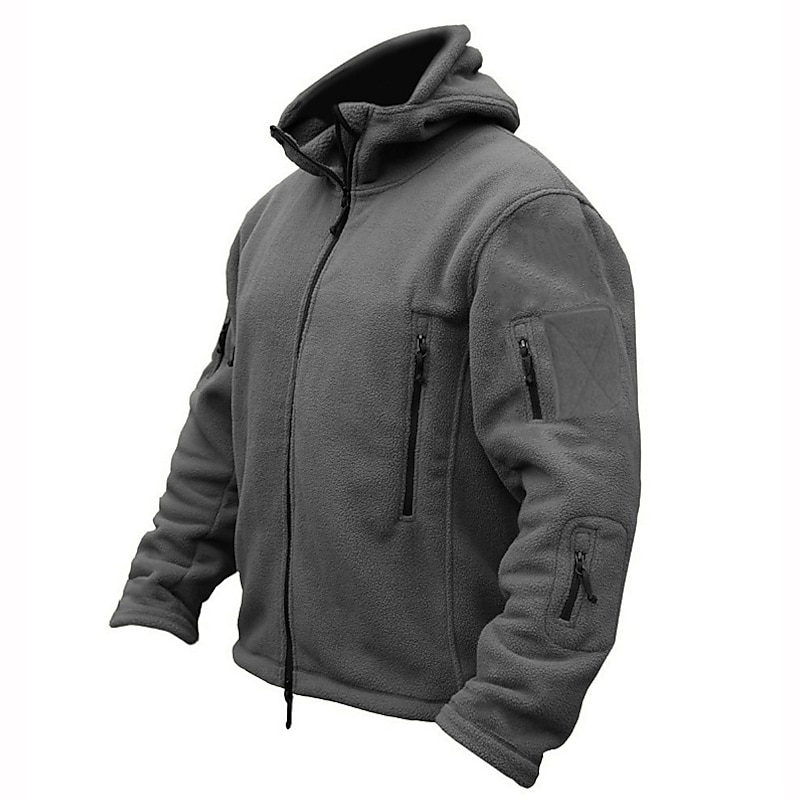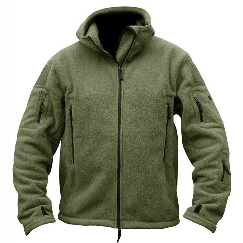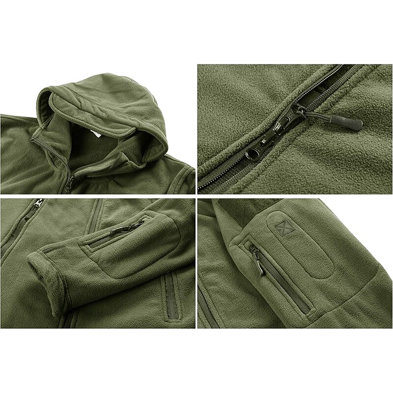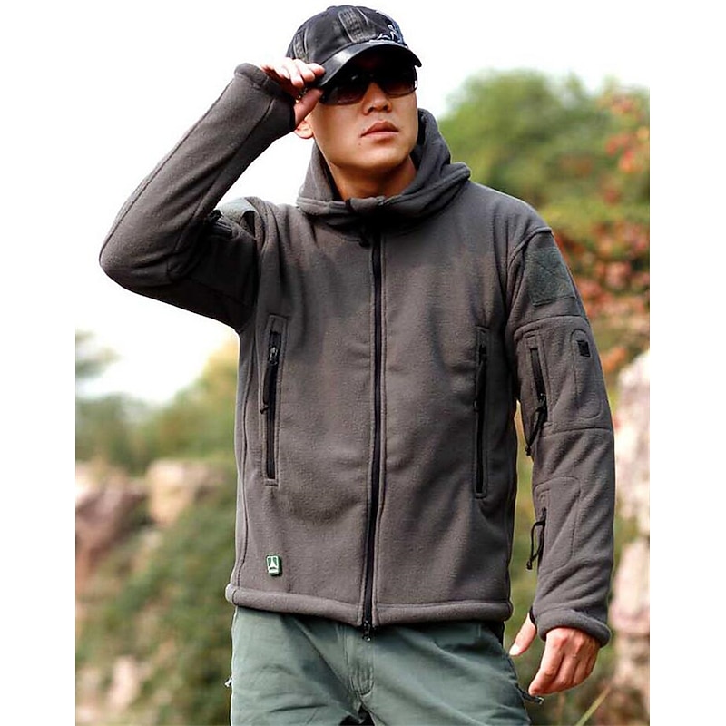Highlights - Stay cozy and comfortable in the soft medium-weight fleece material, perfect for autumn and cold winters. - Enjoy versatile wear options with the ability to use the fleece jacket as an outerwear coat or mid-layer for chilly outdoor activities. - Benefit from the multi-functional Military Tactical design with multiple convenient pockets for your outdoor adventures. - Experience optimal warmth and protection from strong winds with the windproof and thermal features, in addition to a huge hood, long sleeves with thumb-holes and patches on each arm. - Stay stylish and comfortable during a range of activities, including outdoor sports, hiking, skiing, army training, and daily wear. - Made for men and perfect for winter weather, this fleece jacket is designed to be lightweight yet warm with a fleece lining and numerous multi-purpose pockets.