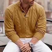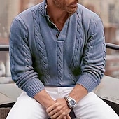 More information about Men's Sweater Pullover Sweater Jumper Ribbed Cable Knit Knit Cropped Button Solid Color Henley Collar Modern Contemporary Casual Clothing Apparel Winter Blue Khaki M L XL