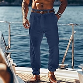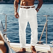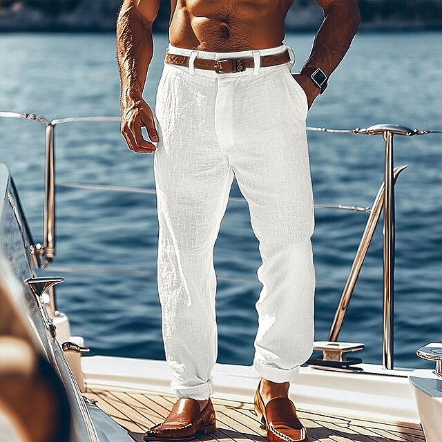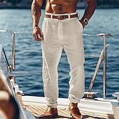 More information about Men's Linen Pants Trousers Summer Pants Baggy Pants Straight Leg Plain Comfort Breathable Full Length Casual Daily Holiday Vacation Fashion Black White