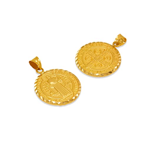 More information about JEWELHEART 14K Real Gold Saint Benedict Medals 14mm 18mm 20mm 25mm Diamond Cut San Benito Pendant Charm For Men Women Religious Medallion Two Sided