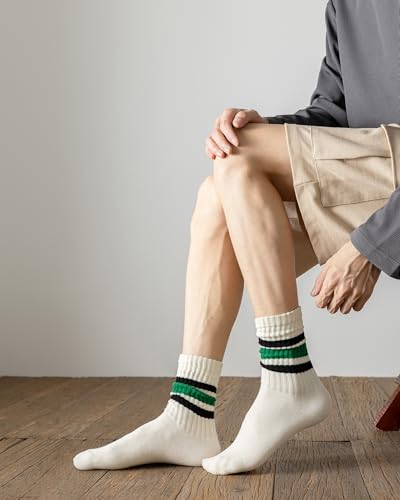 More information about DarkCom Striped Crew Socks 5 Pairs Seamless Toe for Men and Women, Color of Light Cream, Casual Comfort