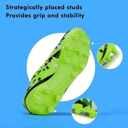 • Practical Kids Soccer Cleats: Upper is made of synthetic material to make the boys soccer cleats lightweight, and the triangular print and groove texture design enhances friction, which is conducive to improving ball control