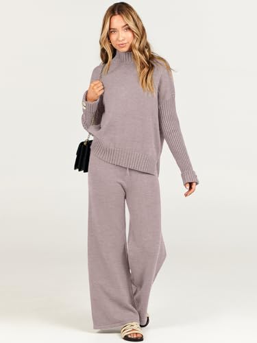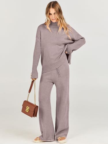More information about Caracilia Womens 2 Piece Sweater Set Knit Pullover Wide Leg Pants Lounge Matching Sets 2024 Fall Fashion Travel Outfits
