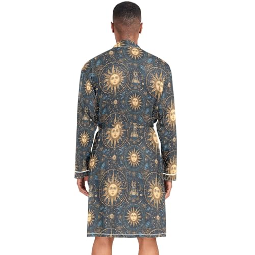 Men’s Robe Vintage Suns Print, Long Sleeve Bathrobe for Sleep Shower-M 2