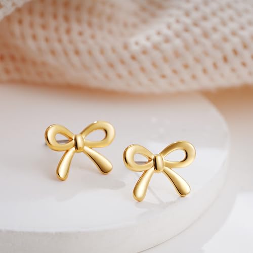 • Premium Quality Material: Our gold Bow Earrings are made of 14K gold plated and high quality brass, these trendy gold earrings studs are non-tarnishable, nickel-free, lead-free, hypoallergenic and won't turn your ears green, which ensures safe and comfortable wear for sensitive ears all day long. You can wear them with confidence and enjoy your beauty