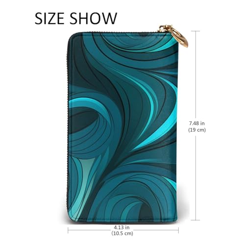 Teal Blue Prints Leather Long Clutch Wallet for Fashionable Girls and Women - Durable, Stylish, and Functional, Black, One Size 1