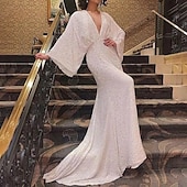 More information about Mermaid / Trumpet Evening Gown Vintage Dress Formal Prom Floor Length Long Sleeve V Neck Sequined with Glitter Sequin