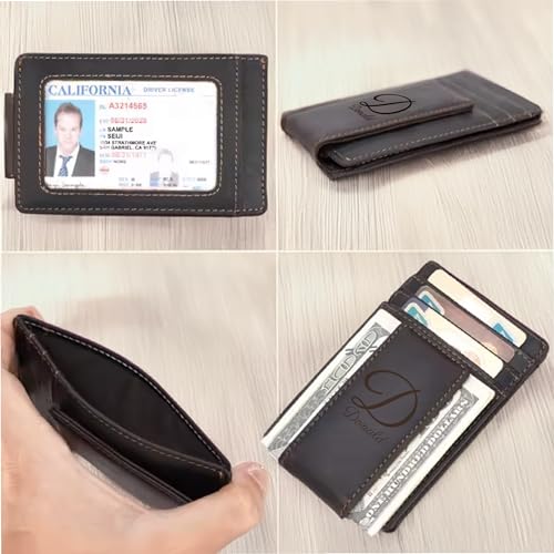 Personalized Leather Magnetic Money Clip Wallet Custom Engraved Slim Front Pocket Card Holder for Men RFID Blocking Minimalist Gift for Him Father's Day Groomsmen 5