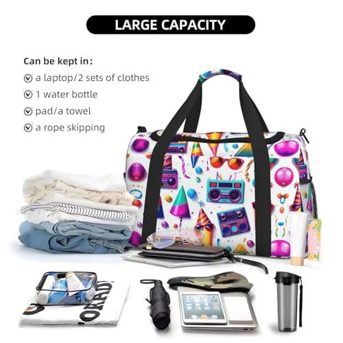 • Pocket Layout: unicorn food print Travel Duffle Bag has one main pocket with double-headed zippers for easy access. An internal zip pocket, adjustable strap (70 - 120cm), 65cm handles, side mesh and reinforced webbing with buckle, offering organized storage.
