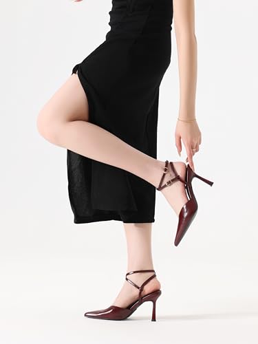 Shoe'N Tale High Heels for Women Pointed Toe Stiletto Pumps for Women Closed Toe Cross Ankle Strap Heeled Sandals with Double Buckle Sexy Heels for Wedding Party Office 7