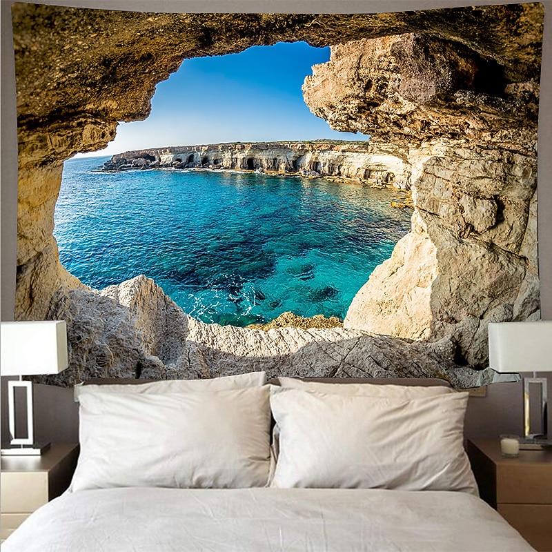 Large Wall Tapestry Art Deco Blanket Curtain Picnic Table Cloth Hanging Home Bedroom Living Room Dormitory Decoration Polyester Fiber Landscape Mountain Water Lake Sea Cave 4