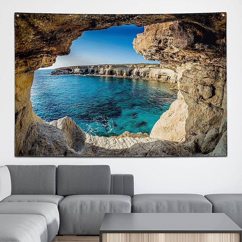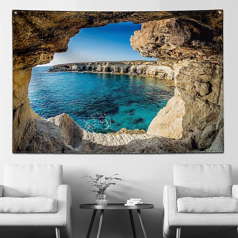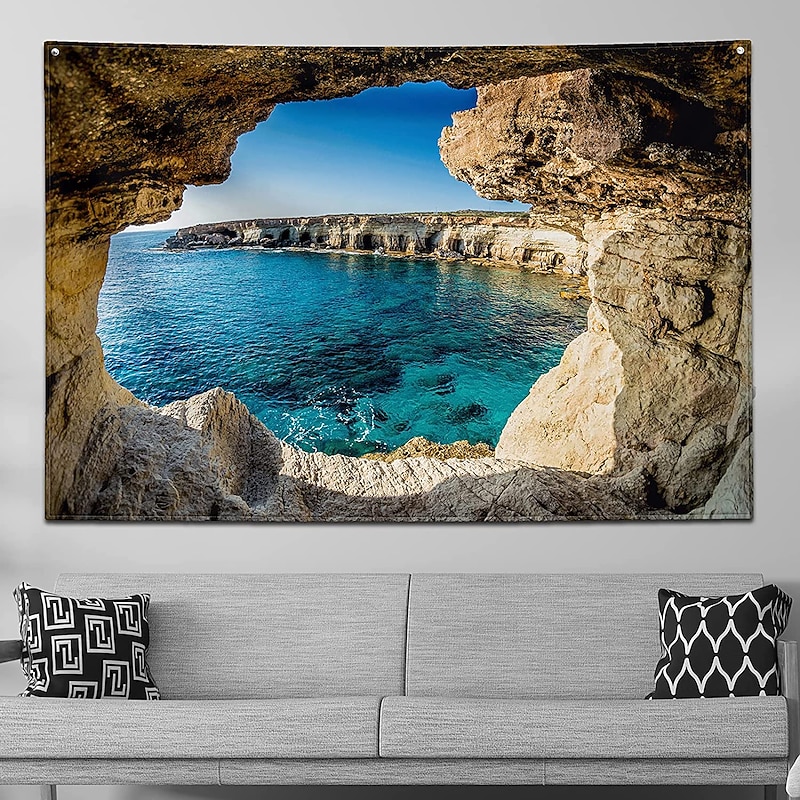 Large Wall Tapestry Art Deco Blanket Curtain Picnic Table Cloth Hanging Home Bedroom Living Room Dormitory Decoration Polyester Fiber Landscape Mountain Water Lake Sea Cave 8