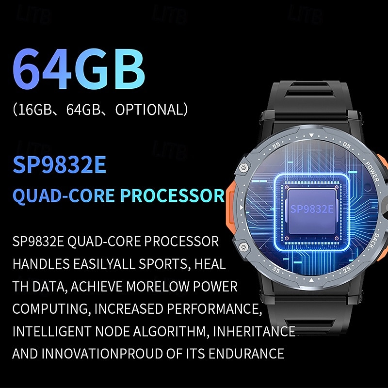 iMosi PG999 Smart Watch 1.54 inch 4G LTE Cellular Smartwatch Phone 4G Pedometer Call Reminder Heart Rate Monitor Compatible with Null Men GPS Long Standby Hands-Free Calls IP 67 43mm Watch Case 3