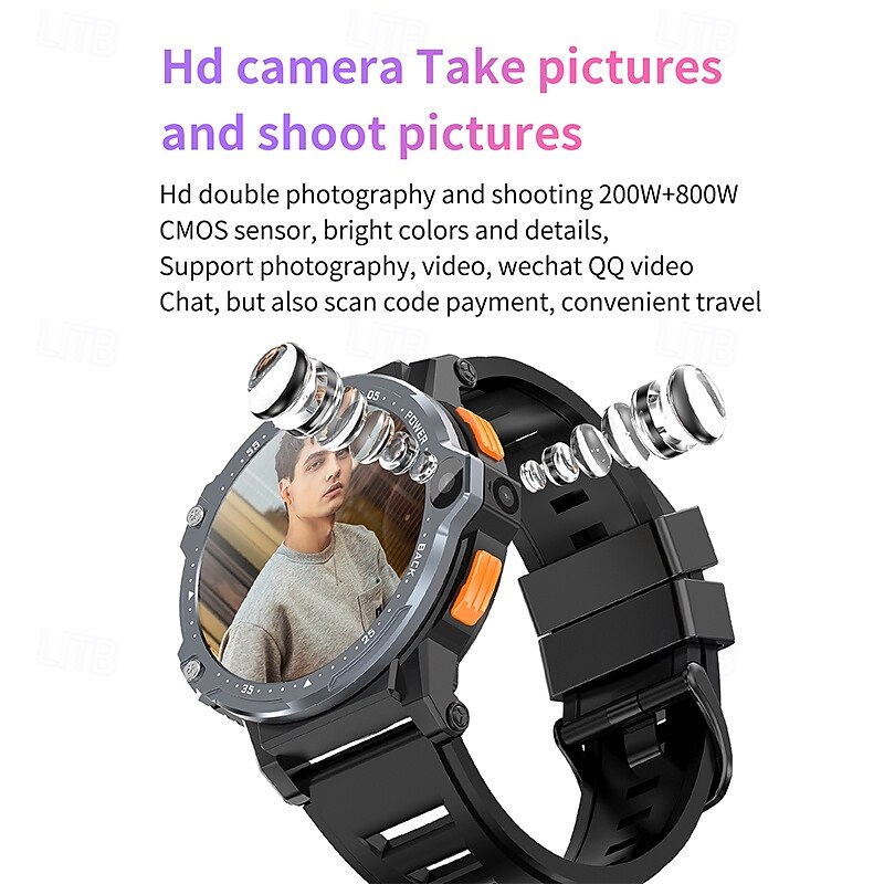 iMosi PG999 Smart Watch 1.54 inch 4G LTE Cellular Smartwatch Phone 4G Pedometer Call Reminder Heart Rate Monitor Compatible with Null Men GPS Long Standby Hands-Free Calls IP 67 43mm Watch Case 13