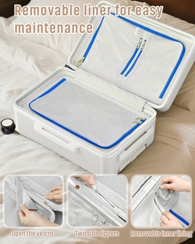 Ultra-Lightweight & Pressure-Resistant Luggage: Weighing just 8.3 lbs, this carry on suitcase is lighter than most, yet features a reinforced frame that withstands 50KG impact tests for superior durability.Smooth Shock-Absorbing Wheels: Equipped with spring-loaded spinner wheels that reduce vibration by 30%, ensuring effortless gliding over rough surfaces—perfect for your trunk luggage adventures.Smart & Convenient Travel Design: Multi-handle adapts to any carrying style, while the fold-out cup holder keeps your hands free—ideal for away carry on luggage users who value functionality.Removable & Organized Interior: This trunk suitcase features a detachable liner for easy cleaning and multiple compartments to keep belongings neatly arranged.360° Protection & Security: 8 reinforced bumper feets prevent scratches and slips on your hardside luggage, plus a TSA-approved lock ensures hassle-free security checks. 2 Years Warranty.Compact & Spacious Trunk Style Carry-On: Dimensions: 22.8 x 14 x 10.9 . Offers 40L packing capacity in a lightweight suitcase (just 8.3 lbs). Perfect for everyday use. High quality materials and excellent craftsmanship ensure long-lasting durability.