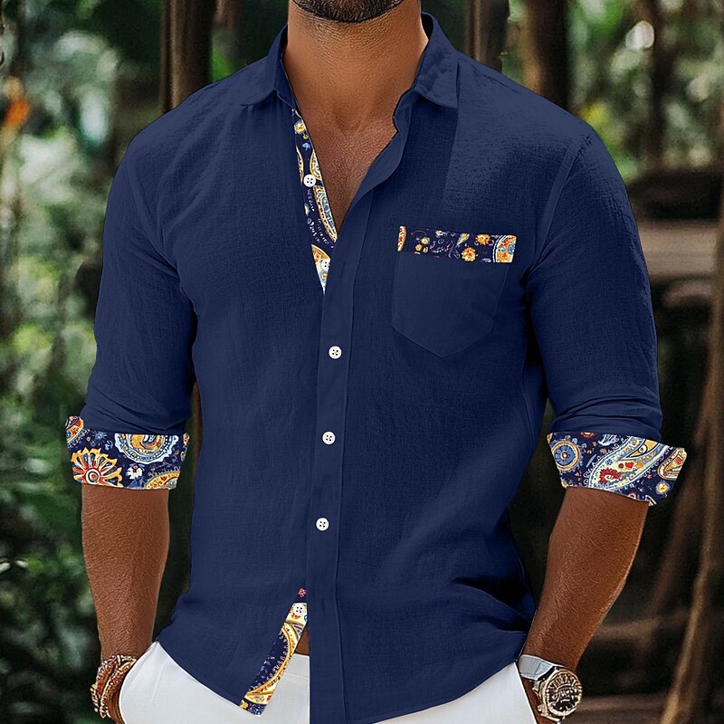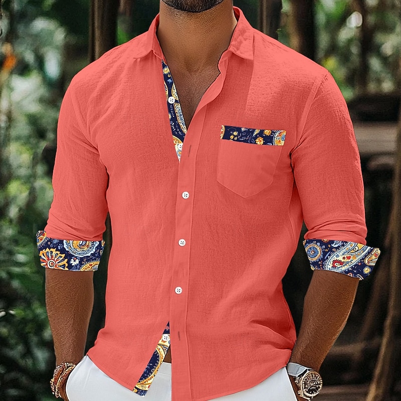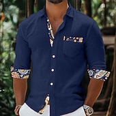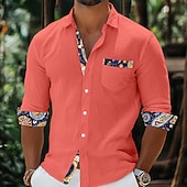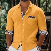 More information about Men's Shirt Linen Shirt Summer Shirt Beach Wear Paisley Vacation Casual Yellow Pink Navy Blue Blue Short Sleeve Lapel Summer Spring & Summer Clothing Apparel Color Block
