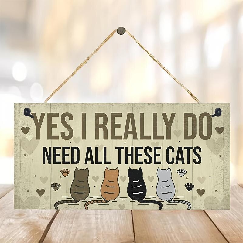 1pc, Funny Cats Signs Wooden Plaques With Sayings "YES I REALLY DO NEED ALL THESE CATS" Wooden Plaque Pet Lover Gift Decorative Sign Wall Hanging Sign Hanging Plaques Wall Decor For Home Room Garden Decor 7.9*3.9in 28