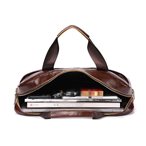 Computer Bag Leather Men's Briefcase Business Briefcase Retro Head Layer Cowhide Slanting Handheld (D) 6