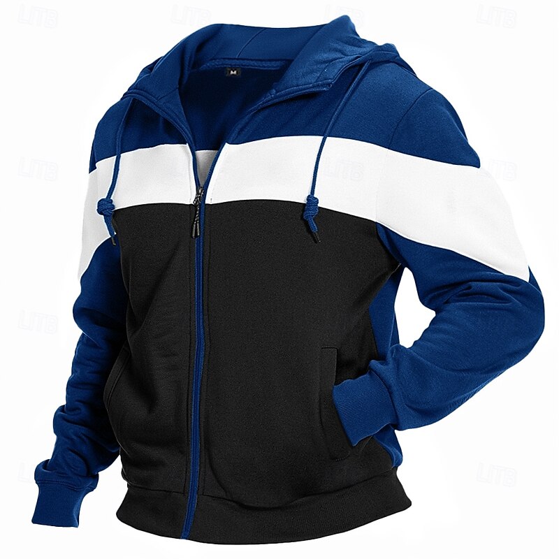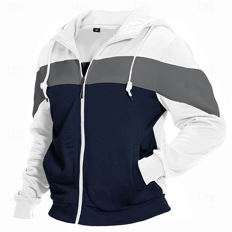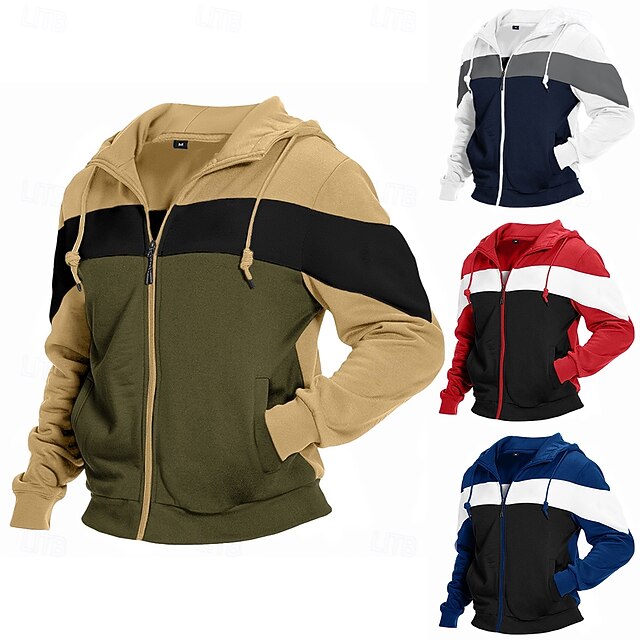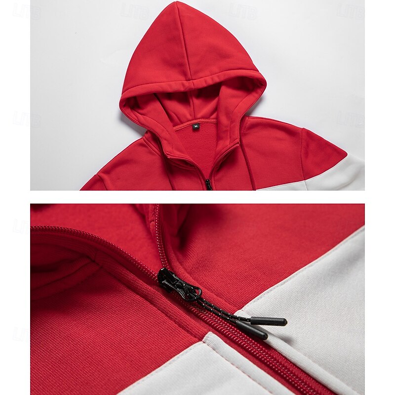 More information about Men's Hoodie Full Zip Hoodie White Red Navy Blue Khaki Hooded Color Block Patchwork Pocket Work Sports & Outdoor Casual Streetwear Basic Casual Spring & Fall Cross-Seasons Clothing Apparel Hoodies