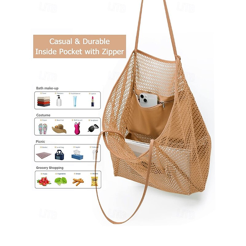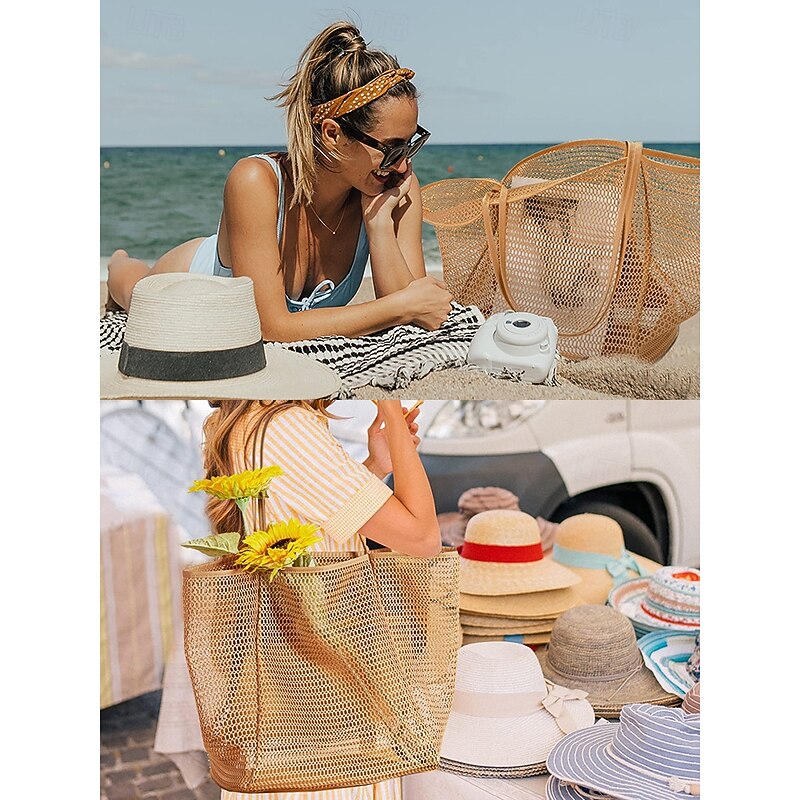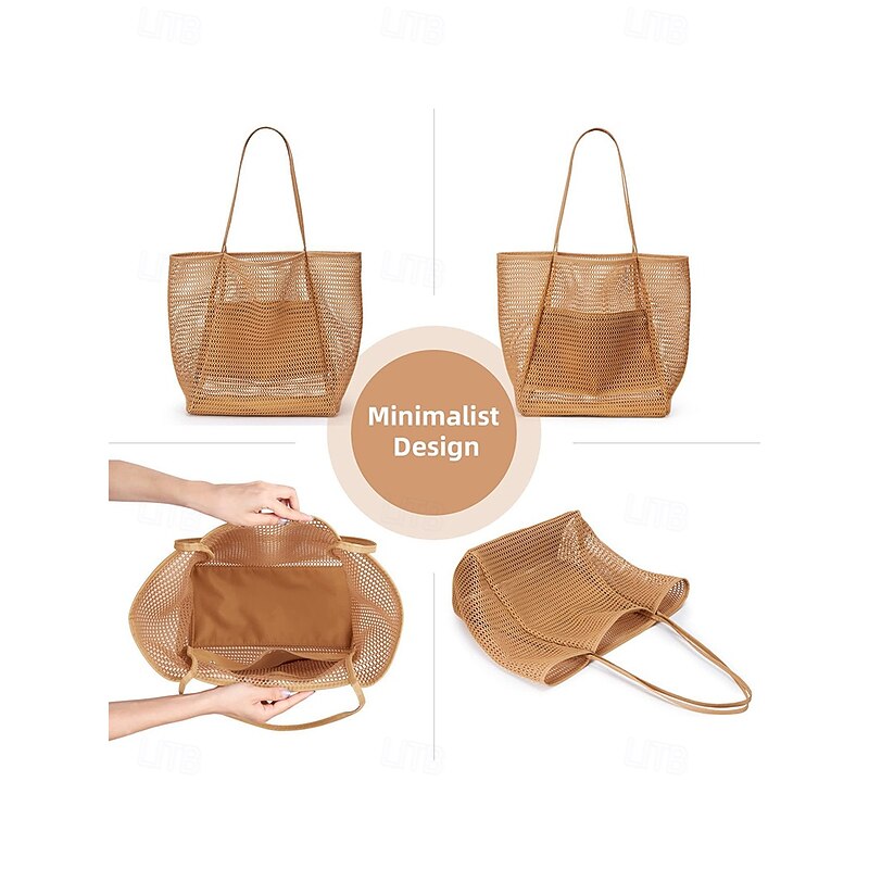 $14.99 - Women's Tote Shoulder Bags Mesh Shopping Casual Daily Beach Large Capacity Solid Color Black Pink Light Green 2025. Shop for cheap Handbag & Totes online? Buy at lightinthebox.com on sale today!