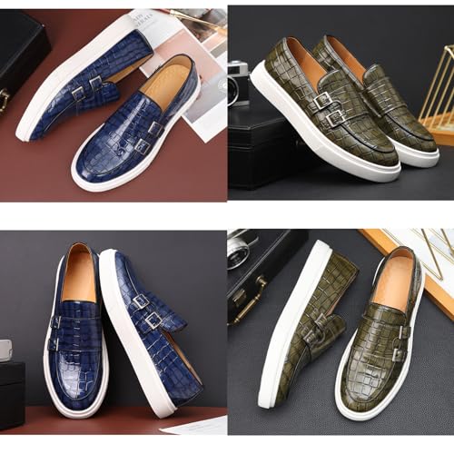 More information about Men's Crocodile Print Double Monk Strap Slip-on Loafers Fashion Patent Leather Classic Oxford Dress Business Shoes Rointed Toe Comfort Sneakers