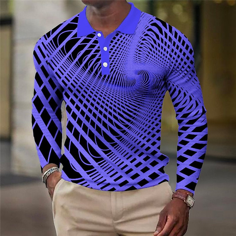 More information about Men's Geometric Waffle Polo Shirts Golf Shirt Long Sleeve Polo Shirts Collared Shirts Business Casual Vacation Wear Formal Wear Festival Wear Buttons 3D Print Fall & Winter White Yellow Blue