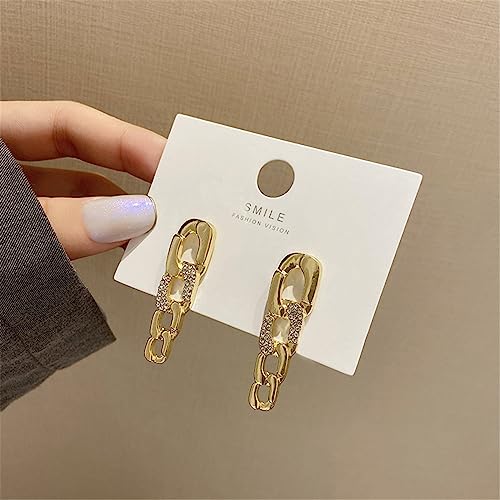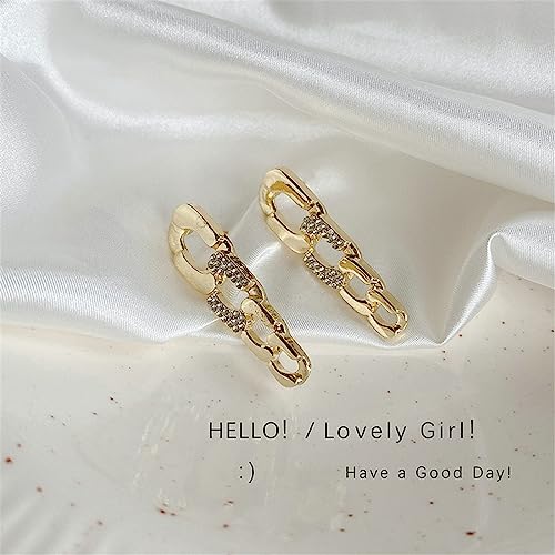 HOT ! 18K Gold Plated Chain Link Earrings for Women Dainty Fashion Sparkling Crystal Symmetrical Chain Link Vintage Curb Minimalist Cool Dangle Drop Stud Earrings Jewelry
