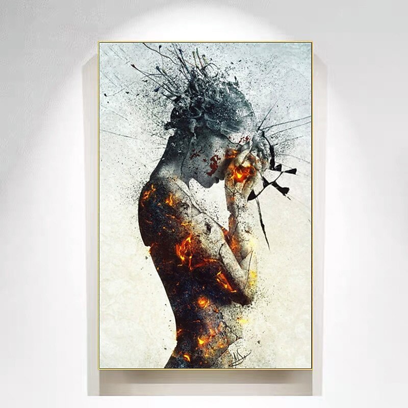 trending ! Graffiti Art Of Fire Girl Canvas Paintings On the Wall Art 100% Handmade Woman latest Art Picture Home Wall Decor