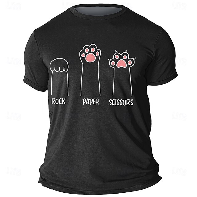 Men's Funny Cat Paws Rock Paper Scissors Graphic T-Shirt | Clever Pun Design for Cat Lovers