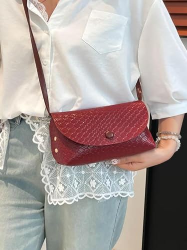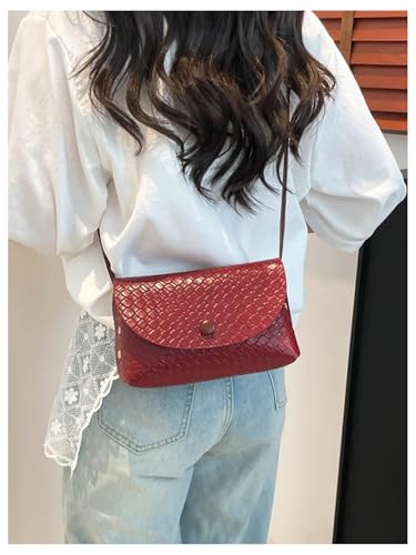 HOT ! QWINEE Women's Woven Purse PU Leather Crossbody Bags Flap Clutch Purses Retro Square Handbags